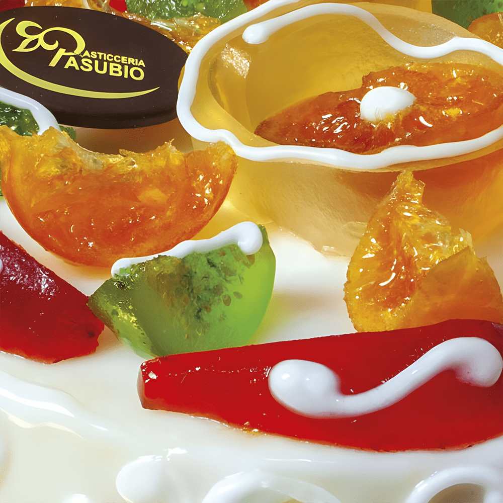 A masterpiece of Sicilian sweetness: a dance of candied fruit over a white glaze, embracing a soft heart of fresh ricotta, sponge cake, candied fruit and chocolate chips. Every bite tells the story of authentic Sicilian pastry, blending rich tradition with artisan care.