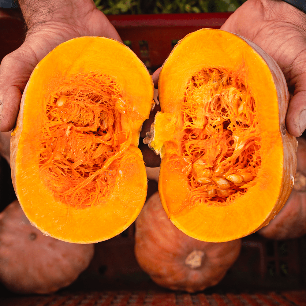 Our Sicilian Yellow Pumpkin ripens under Mediterranean light, developing sweet, dense flesh and a fragrant aroma that elevates everyday cooking. Roast for caramelised edges, blend into silky soups, fold into risotto or shape gnocchi with a naturally creamy texture. High in beta-carotene (vitamin A), fibre and potassium, it arrives fresh thanks to a short, family-run supply chain that respects seasons and land. Hand-harvested at peak ripeness, offered whole or in ready-to-use cuts, this is a true seasonal vegetable that brings the warmth of Sicily straight to your kitchen.